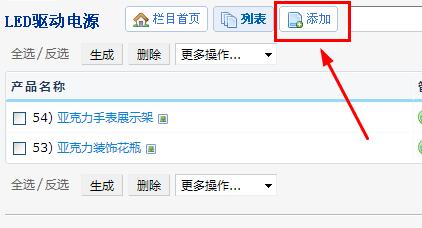 下面教大家如何新增一個產(chǎn)品,見下圖,在產(chǎn)品中心下面隨便點一個產(chǎn)品分類進去,見下圖: