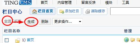 注意:由于本系統(tǒng)采用了html純靜態(tài)生成技術(shù)(好處多多),你可能在修改資料或新增資料的時候,見不到效果,在這種情況下,你可以回到“欄目中心”,按照下面的圖示,先點全選,再點生成,刷新下你修改的那個欄目或文章就可以了,如果只是想見到修改后的某一篇文章或產(chǎn)品頁面有沒效果,修改完后,刷新下你的文章或產(chǎn)品頁就行,文章或產(chǎn)品頁在修改后就已經(jīng)自動生成了。